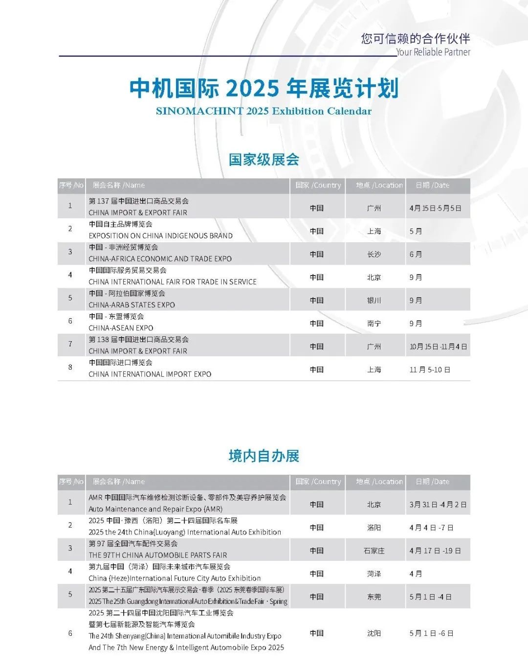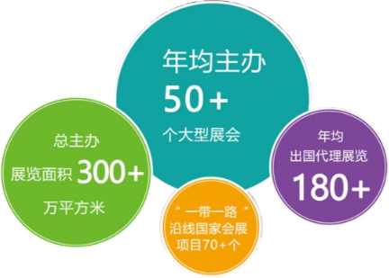 ????中機(jī)國(guó)際每年境內(nèi)外主承辦 50 余場(chǎng)展會(huì),展會(huì)面積超 300 萬(wàn)平方米,辦展數(shù)量和面積在《中國(guó)境內(nèi)組展機(jī)構(gòu) 50 強(qiáng)》排行榜中名列前茅 ;每年組織出國(guó)代理展 180 個(gè) ;連續(xù) 8 年在中國(guó)貿(mào)促會(huì)發(fā)布的《中國(guó)展覽經(jīng)濟(jì)發(fā)展報(bào)告》排名中組展項(xiàng)目數(shù)量位列全國(guó)第一,是中國(guó)最大的海外組展機(jī)構(gòu)之一 ;擁有全球的渠道和網(wǎng)絡(luò),出展足跡遍 布 100 多個(gè)國(guó)家、300 多個(gè)城市,累積 3100 多次國(guó)際展覽經(jīng)驗(yàn)。